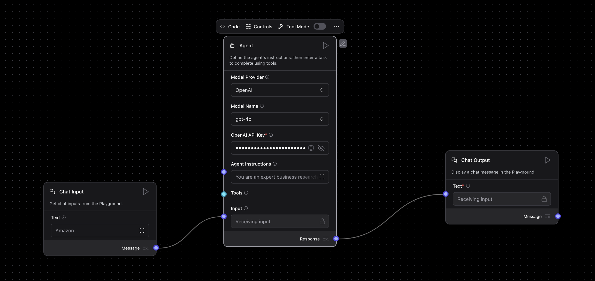 Click the OpenAI component → Controls: